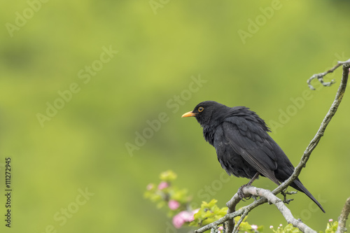 © Sander Meertins, Fototapeta premium Blackbird (turdus merula) singing in a tree