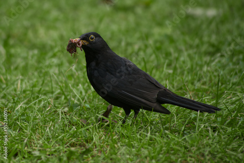 © Jarno, Fototapeta premium blackbird with earthworms in the beak