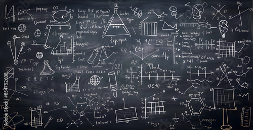 © Amna, Fototapeta premium Blackboard Filled with Scientific Formulas and Equations background