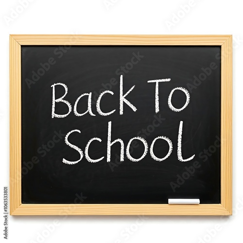 Obraz premium Blackboard with "Back To School" with chalk text on it isolated on white...