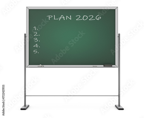 © doomu, Obraz premium Blackboard with the Phrase Plan 2026. 3d Rendering