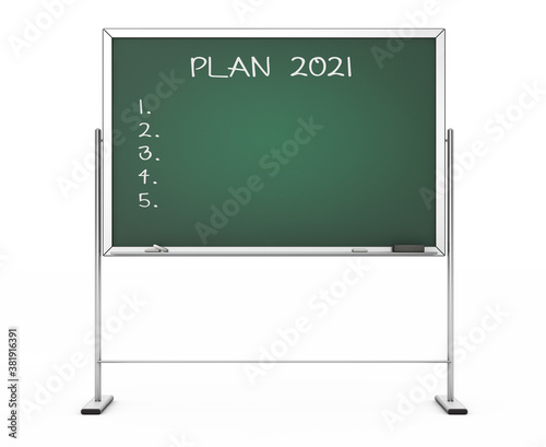 Obraz premium Blackboard with the Phrase Plan 2021. 3d Rendering