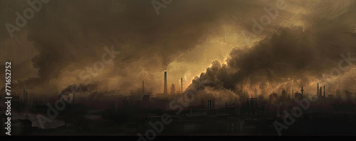 Obraz premium Blackened economy under coal smoke, gas haze enveloping, twilight canvas for text