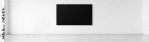© JP STUDIO LAB, Naklejka premium Blackframed blank poster on a pristine white wall and reflective floor, perfect for creative mockups or advertising content