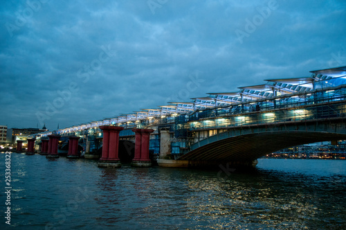 Obraz premium Blackfriars train bridge with new solar panels at dusk, London, UK
