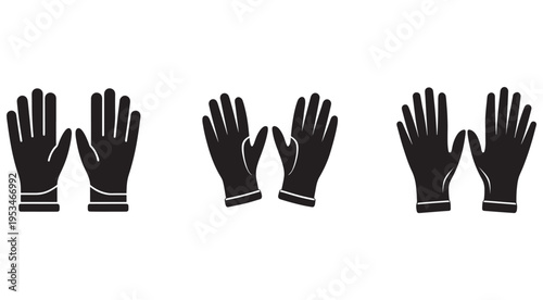 Fototapeta premium Blackglovepairsindifferentpositionsisolatedonwhitebackground