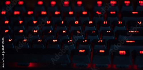 Obraz premium blacklit keyboard close up. gaming keyboard with black keys with iluminated...