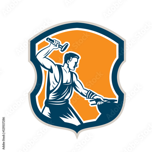 Naklejka premium Blacksmith Hammering Pliers Shield Retro