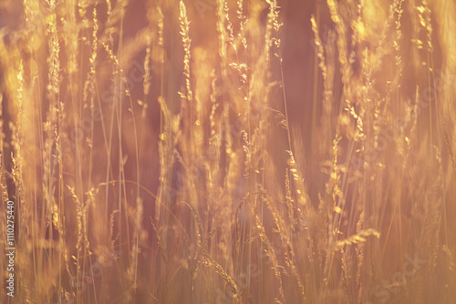 Fototapeta premium Blades of grass backlit by the setting sun