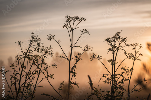 © Cavan, Obraz premium Blades of meadow grass in the morning mist