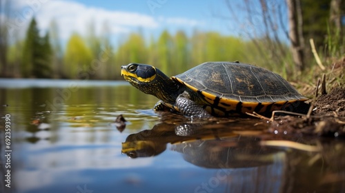 Obraz premium Blanding's Turtle at water