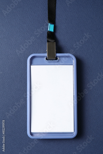 Obraz premium Blank badge with string on blue background, top view