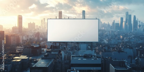 © Murda, Obraz premium Blank billboard above city skyline with buildings.