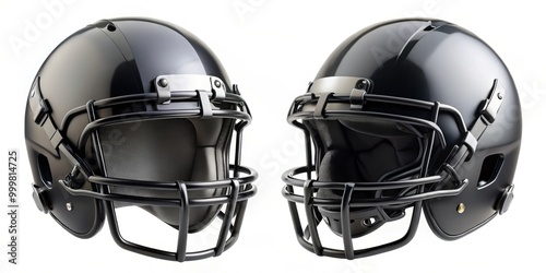 Fototapeta premium Blank black american football helmet mockup in multiple views, football, helmet, sports, black, mockup, equipment