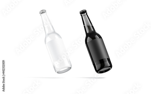 © Alexandr Bognat, Naklejka premium Blank black and white glass beer bottle with label mockup