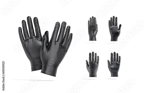 Fototapeta premium Blank black rubber gloves palm mockup, different views