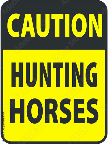 © Dotana, Fototapeta premium Blank black-yellow caution hunting horses label sign on white