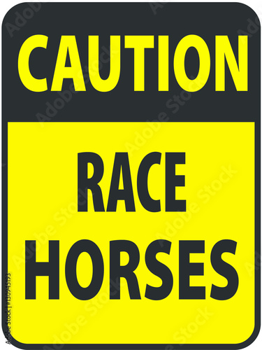 Fototapeta premium Blank black-yellow caution race horses label sign on white