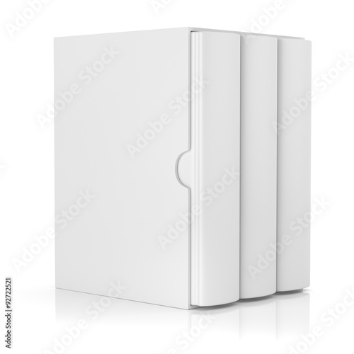 © Roman Samokhin, Naklejka premium blank book in cardboard box cover isolated on white