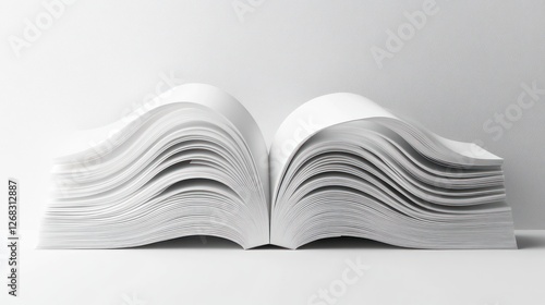 © Almahyra, Fototapeta premium Blank book pages open, white background, studio shot, publishing
