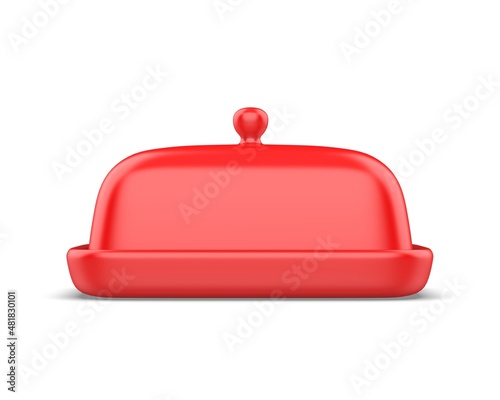 Obraz premium Blank Butter Keeper Container Plate With Lid Template, 3e render illustration.