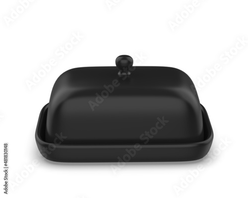Obraz premium Blank Butter Keeper Container Plate With Lid Template, 3e render illustration.