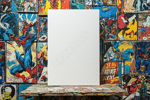 Obraz premium Blank Canvas Against a Wall of Comic Book Panels