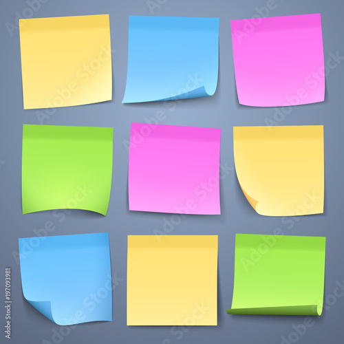 © MicroOne, Fototapeta premium Blank color message sticky papers vector set