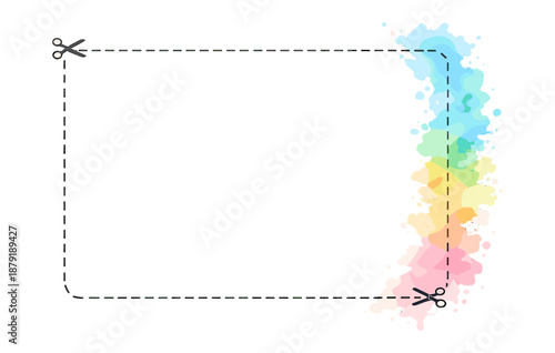 © 4zevar, Obraz premium Blank coupon design with colorful splashes and dashed border