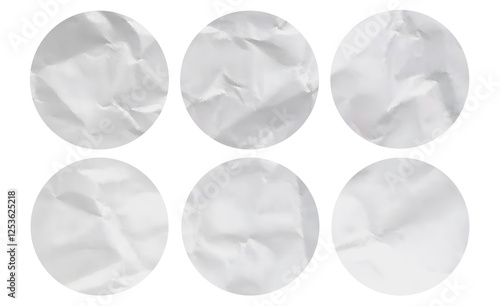 © AlAmin, Naklejka premium Blank Crumpled Paper Sticker Round Shape Texture For PSD Mockup Template