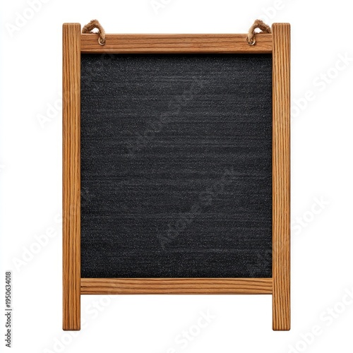 © Alvin, Obraz premium Blank, dark chalkboard with a natural wood frame and rope hanger on a white background