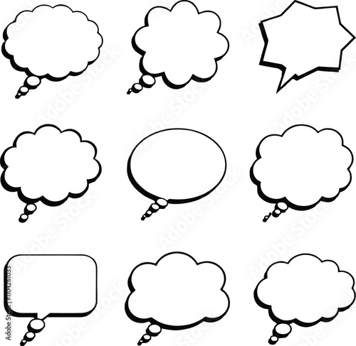 © ABDULAWAL, Fototapeta premium Blank empty speech and thought bubbles line art bundle vector illustration set