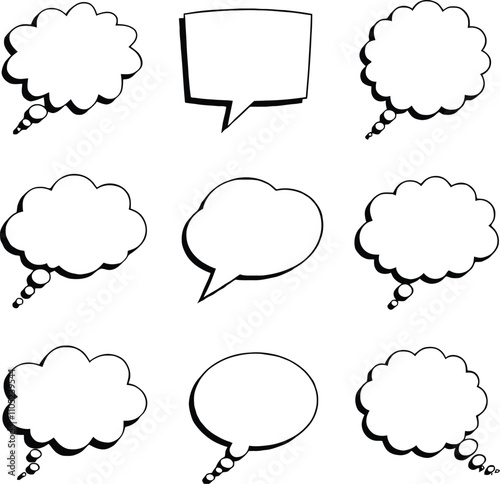 © ABDULAWAL, Fototapeta premium Blank empty speech and thought bubbles line art bundle vector illustration set