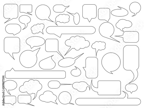 Obraz premium Blank empty speech bubble outline controur set. Simple flat vector illustration.