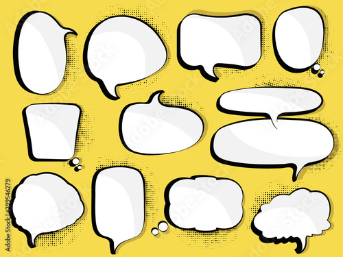Fototapeta premium Blank empty white speech bubbles on yellow background.