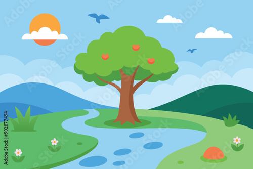 © Jaker, Obraz premium Blank landscape scene of nature park at sunset time