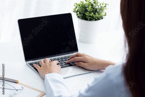 Fototapeta premium Blank laptop tecnology at office. image doctor desk office Health care...