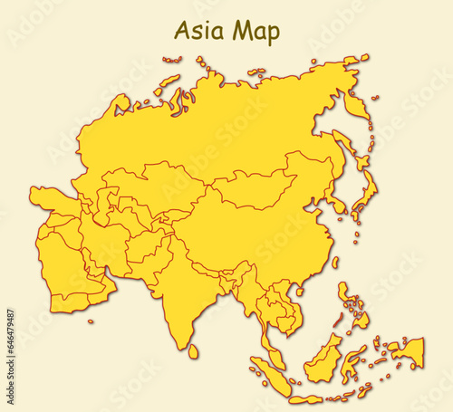 © Ade, Fototapeta premium blank map of Asia printable yellow color map of asia
