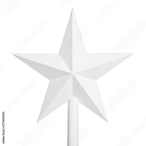 © Darunee, Fototapeta premium Blank matte white minimalist tree topper star mockup with simple five point geometry, isolated on transparent background, png