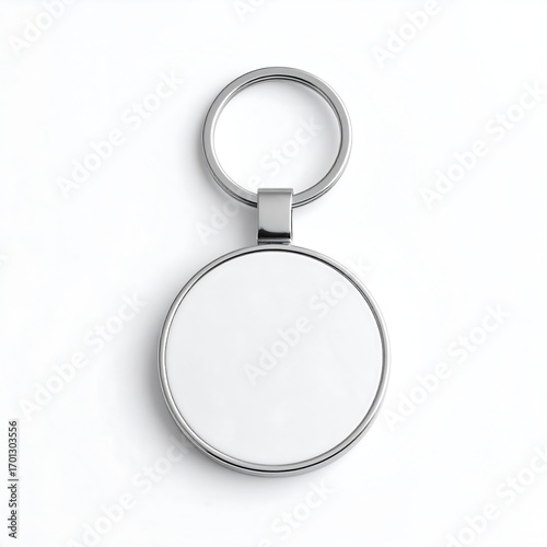 © ifa, Fototapeta premium Blank metal keychain mockup; white background