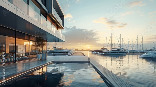 Obraz premium Blank mockup of a modern marina sign with clean lines and a sleek design. .