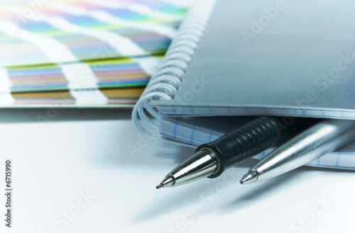 Fototapeta premium blank notebook, pens, color guide