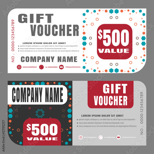 © DreamLine_, Obraz premium Blank of gift voucher vector illustration to increase sales on white and dark background with pattern.