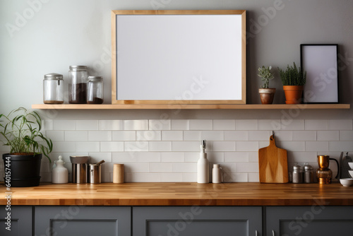 Fototapeta premium Blank picture frame mockup with copy space. Generative AI