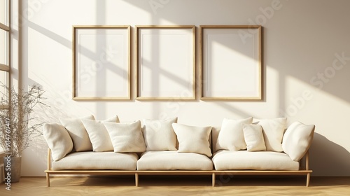 Fototapeta premium Blank poster on white wall, Modern vintage interior of living room