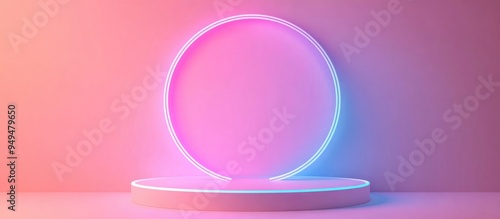 Obraz premium Blank product display featuring neon lights on a pastel colored background 3D...