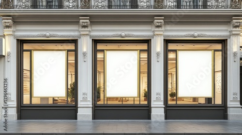 Obraz premium Blank rectangular signage on clean facade of boutique-style shop with...