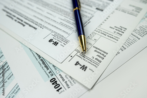 © RomanR, Obraz premium blank tax form 1040 w4 w9 on office desk, deadline