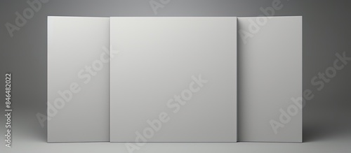 © Gular, Obraz premium Blank tri fold flyer brochure on gray background as a copy space image for design presentation showcase etc