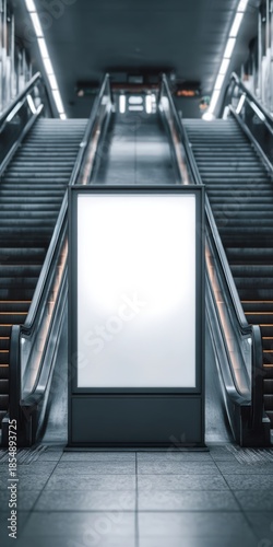 © chelmicky, Fototapeta premium Blank vertical billboard mockup at subway escalator station